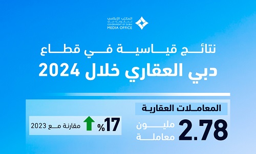 جاء ذلك خلال اطّلاع سموّ الشيخ حمدان بن محمد بن راشد آل مكتوم على النتائج القياسية التي حققها القطاع العقاري في إمارة دبي خلال عام 2024، حيث سجّل القطاع أداءً استثنائياً يعكس مكانة دبي كوجهة استثمارية عالمية‘ إذ تم إنجاز 2.78 مليون معاملة عقارية في هذا العام، وهو الرقم الأعلى على الإطلاق في تاريخها من حيث التعاملات العقاريّة الإجماليّة (بما يشمل التصرفات العقاريّة والمعاملات الإيجاريّة)، محققاً زيادة بنسبة 17% مقارنة بالعام 2023، في حين بلغ عدد التصرفات العقارية 226 ألف تصرف بقيمة إجمالية بلغت 761 مليار درهم، بنمو نسبته 36% من حيث العدد و20% من حيث القيمة مقارنة بالفترة ذاتها.