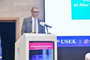 من جهته، ألقى الدكتور حمد العضابي، نائب مدير جامعة أبوظبي لشؤون الذكاء الاصطناعي والتميّز التشغيلي، كلمة نيابةً عن رئيس الجامعة البروفسور غسان عوّاد، أعرب فيها عن اعتزازه بالتعاون مع جامعة الروح القدس – الكسليك في تنظيم هذا المؤتمر، الذي يسعى إلى رفع الوعي العام حول الذكاء الاصطناعي ومناقشة تحدياته وتطبيقاته في دعم التعليم.