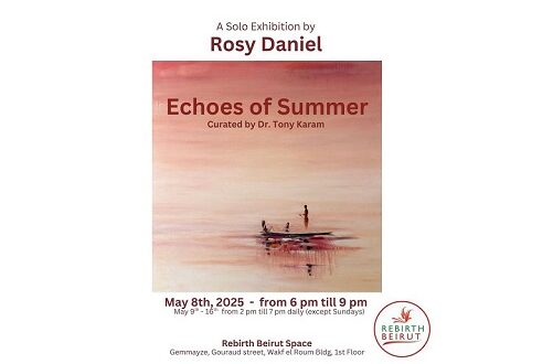 يسرّ جمعية Rebirth Beirut  تقديم المعرض الفردي الأول للفنانة اللبنانية روزي دانيال Echoes of Summer، بتنظيم الدكتور طوني كرم.