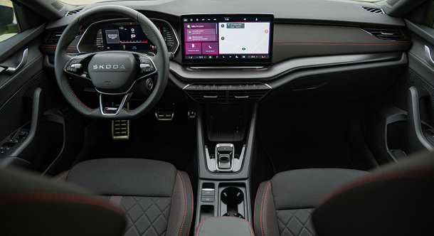 في الداخل، ترسي ’أوكتافيا‘ معياراً جديداً بفضل التزامها بالراحة الراقية والمواد الصديقة للبيئة. وتظهر للمرّة الأولى شاشة بحجم 13 بوصة لنظام المعلومات والترفيه، وتكمّلها شاشة رقمية أعيد تصميمها حديثاً بحجم 10 بوصات لتحلّ مكان العدّادات التناظرية وذلك كتجهيز قياسي ضمن المجموعة. وتوفر الآن منافذ USB-C معزَّزة لقدرات الشحن السريع بطاقة 45 واط، بينما تتيح علبة الهاتف (Phone Box) المتطوَّرة الشحن اللاسلكي بطاقة 15 واط مع ميّزة التبريد المدمَجة. ويستمتع الركّاب بمزيد من الراحة والمزايا التصميمية التي تم التفكير بها برعاية، حيث تتضمّن كسوات المقاعد مواداً أعيد تدويرها وجلوداً مصبوغة بطريقة مستدامة. أما الخصائص الأخرى مثل التحكّم المناخي Climatronic مزدوج المناطق، والدخول المعزَّز KESSY بدون مفتاح، وإضافات Simply Clever الذكية – شاملة علبة تخزين خلفية جديدة وشمسية من مواد مستدامة – فتكمّل المقصورة التي تم تحديثها بعناية وباعتماد طريقة تفكير مميّزة.