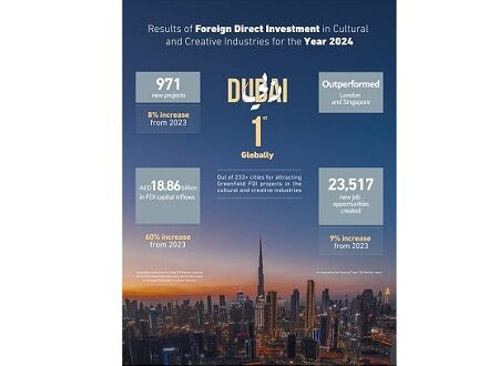 أعلنت هيئة الثقافة والفنون في دبي “دبي للثقافة” عن تصدر دبي مؤشر عدد مشاريع الاستثمار الأجنبي المباشر في الصناعات الثقافية والإبداعية لعام 2024، وذلك للعام الثالث على التوالي، بحسب تقرير “إف دي آي ماركتس” الصادر عن “فايننشال تايمز”، المصدر الأبرز عالمياً لبيانات مشاريع الاستثمار المباشر الجديدة، ولتصنيف بيانات “مجموعة الصناعات الإبداعية” التابع للتقرير ذاته، متفوقةً على مدن عالمية مهمة، مثل: لندن، وسنغافورة، وذلك بعد تقييم أداء 233 مدينة على مستوى العالم.