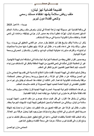 وأكد المكتب ثقته الكاملة بالقضاء اللبناني، داعيًا إلى فتح تحقيق عاجل ومستقل لكشف ما جرى ومنع تكراره في قضايا كبرى مماثلة، حرصًا على سمعة القضاء وحقوق المدّعين.