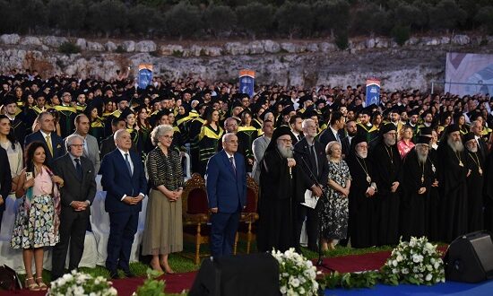 وألقى شربل الحيصا من معهد القدّيس يوحنا الدمشقي اللاهوتي كلمة الخرّيجين، قائلًا: ” كطلابٍ نعيش في لبنان، كانت رحلتنا أصعب من غيرها. ومع ذلك، ها نحن نقف شامخين. ألا يدلّ ذلك على صمودنا؟ على الرغم من كل شيء، مضينا قُدمًا. كانت أحلامنا كبيرة… ورغم كل الصعاب، أثبتنا أن الأمل أقوى من الخوف”.