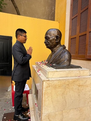 أُقيمت مراسم رفع العلم في مقر السفارة صباحًا، حيث وضع سعادة سفير الهند في لبنان محمد نور رحمن شيخ إكليلًا من الزهور تكريمًا للمهاتما غاندي، ورفع العلم الوطني. وقد شارك في هذا الاحتفال أكثر من 200 شخص، من بينهم أفراد من الجالية الهندية، وأفراد من الكتيبة الهندية، وأصدقاء لبنانيين، وموظفو السفارة، حيث ردّدوا النشيد الوطني. وقرأ السفير شيخ الخطاب الذي ألقته فخامة رئيسة الجمهورية على اﻷمة، وحثّ المواطنين الهنود على مواصلة المساهمة في تعزيز العلاقات بين الهند ولبنان.