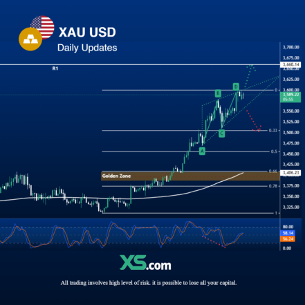 شهد الذهب موجة صعود قوية خلال الفترة الأخيرة لامس خلالها مستويات 3,600 دولار، مدفوعًا بزخم شرائي قوي وتكوين قمم وقيعان صاعدة متتالية. الحركة السعرية الأخيرة أظهرت نموذجًا أقرب إلى “ABCD” مكتمل عند القمة الحالية، مما يعكس احتمالية دخول السعر في مرحلة تصحيح أو تماسك قبل محاولة استكمال الصعود. والمؤشرات الفنية مثل الستوكاستيك تظهر نموذج دايفرجنس هابط، مما يدعم سيناريو حدوث تراجع مؤقت.