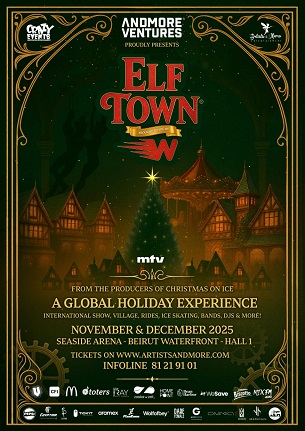 تفاصيل الحدث • ELF TOWN — أكبر قرية ميلادية في لبنان • المكان: سي سايد أرينا، الواجهة البحرية لبيروت – القاعة 1 • التواريخ: من 23 نوفمبر إلى 23 ديسمبر 2025 • التذاكر: دخول القرية 10 دولارات | العرض ابتداءً من 20 دولاراً (يشمل دخولاً مجانياً للقرية)