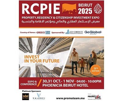 برعاية سعادة المحافظ القاضي مروان عبّود، تستعدّ العاصمة بيروت لاستضافة معرض RCPIE Beirut 2025، الحدث الأبرز في مجال برامج الجنسية الثانية والإقامة عبر الاستثمار والسوق العقاري في لبنان، والذي تنظّمه شركة PromoTeam برئاسة السيد إلياس الخوري، في نسخته التاسعة على التوالي، وذلك في فندق فينيسيا – بيروت على مدى ثلاثة أيام، من الخميس 30 تشرين الأول/أكتوبر ولغاية السبت 1 تشرين الثاني/نوفمبر 2025.