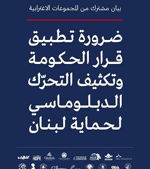 وفي موازاة ذلك، تدعو المجموعات إلى أوسع استنفار وطني وإنساني لمساندة النازحين والمتضررين، وتأمين الحد الأدنى من مقومات الصمود الكريم في وجه المأساة المتفاقمة.