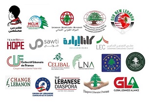جمعية الإنتشار اللبناني ما وراء البحارDLO، الجامعة اللبنانية الثقافية في العالم، كلنا ارادة، اتحاد الجاليات اللبنانية في أوروبا، المنتدى اللبناني في اوروبا، مغتربين مجتمعين، مجلس التنفيذيين اللبنانيين، مواطنون لبنانيون حول العالم، الحراك الاغترابي اللبناني، Change Lebanon، Collectif Libanais de France،,Global Lebanese Alliance Latin American Center For Lebanese Studies، Lebanese National Alliance، Our New Lebanon, ROOTED, TeamHope