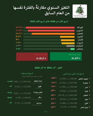 تتابع وزارة الاقتصاد والتجارة عن كثب تطورات الأسعار في مختلف المناطق اللبنانية، لا سيما وأن معدلات التضخم شهدت ارتفاعاً في مرحلة الحرب. وفي البيان التالي، شرحٌ مفصّل لأسباب التضخم، والإجراءات التنفيذية والرقابية التي تتخذها الوزارة. كما تورد الوزارة في البيانات المرفقة بالأرقام والصور حصيلة رصدها لأسعار 60 سلعة ومدى تغيراتها منذ بدء الحرب إلى اليوم.