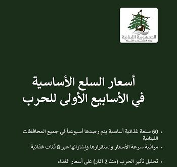 تتابع وزارة الاقتصاد والتجارة عن كثب تطورات الأسعار في مختلف المناطق اللبنانية، لا سيما وأن معدلات التضخم شهدت ارتفاعاً في مرحلة الحرب. وفي البيان التالي، شرحٌ مفصّل لأسباب التضخم، والإجراءات التنفيذية والرقابية التي تتخذها الوزارة. كما تورد الوزارة في البيانات المرفقة بالأرقام والصور حصيلة رصدها لأسعار 60 سلعة ومدى تغيراتها منذ بدء الحرب إلى اليوم.
