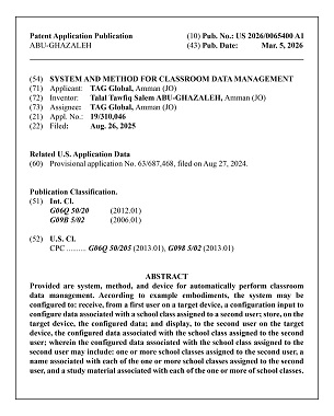 الأمريكي، تحت عنوان “System for Classroom Data Management”، وذلك عن نظام