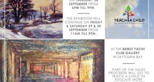 تنظّم جمعية Teach a Child معرض “Art for Education” للفنان “توم يونغ” دعماً للجمعية برعاية السفارة البريطانية وذلك في صالة عرض نادي اليخوت، الزيتونة باي، بيروت، الذي سيتم افتتاحه يوم الخميس 28 أيلول، من الساعة السادسة حتى التاسعة مساء، فيما يقام المعرض في 29 و30 أيلول، من الساعة الحادية عشر صباحاً حتى التاسعة مساء يتضمّن المعرض 50 لوحة زيتيّة للفنّان ...