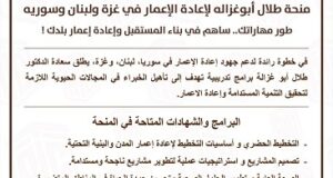 أكمل القراءة »منحة طلال أبو غواله لإعادة الإعمار في غزة ولبنان وسورية