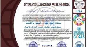 تكريم الدكتورة ايمان غصين من الإتحاد الدولي للصحافة والأعلام