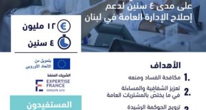 أكمل القراءة »الاتحاد الأوروبي وإكسبرتيز فرانس يطلقان مشروعاً بقيمة 12 مليون يورو لتعزيز النزاهة والشفافية والمساءلة في الإدارة العامة اللبنانية