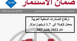 “ضمان الاستثمار”: ارتفاع الصادرات السلعية العربية بمعدل 43% إلى 1.7 تريليون دولار عام 2022 عبد الله أحمد الصبيح: التجارة العربية البينية تجاوزت 508 مليارات دولار مع تركزها في دول الخليج ومصر بنسبة تزيد عن 85% كشفت المؤسسة العربية لضمان الاستثمار وائتمان الصادرات (ضمان) عن نمو التجارة العربية في السلع والخدمات خلال عام 2022 بمعدل 32.4% لتبلغ 3.5 تريليونات دولار، مدعومة بنمو ...