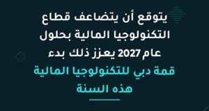 قيمة قطاع التكنولوجيا المالية في الشرق الأوسط وأفريقيا ستتضاعف من 135.9 مليار دولار في عام 2021 إلى 266.9 مليار دولار في عام 2027 وفقًا لمركز دبي المالي العالمي محمد البلوشي : “دبي تضم 60% من إجمالي شركات التكنولوجيا المالية في دول مجلس التعاون الخليجي” القطاع يشهد نمواً سريعاً في دبي وتوقعات بوصول قيمته عالميًا إلى 305 مليار دولار بحلول عام ...
