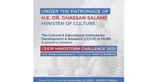 برعاية معالي وزير الثقافة الدكتور غسان سلامة، تطلق أكاديمية الباحث الشاب Young Research Academy في المعهد الثقافي التربوي للتنمية والبحث CEIDR – الجامعة الحديثة للإدارة والعلوم MUBS : جائزة الإبداع والابتكار 2025 CEIDR Mindstorm challenge 2025 Tech-Driven Innovations for Sustainable Health and Wellbeing تهدف هذه المسابقة الوطنيّة إلى تشجيع الطلّاب على ابتكار حلول تقنيّة، فعّالة ومستدامة، لمعالجة مسائل الصحّة والرفاه. بدءاً ...