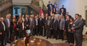 الحبحاب:” السفارة اللبنانية ملتقى جامع وحاضن” البراك:” تقوية العلاقات قرار على أعلى المستويات” بوشكيان:”تطلّعاتنا مع العراق أكثر من علاقات بين دولتين” أقام السفير اللبناني في العراق الدكتور علي الحبحاب حفل استقبال على شرف وزير الصناعة جورج بوشكيان في السفارة اللبنانية في بغداد. فتحوّل المقرّ بمبادرة السفير، ملتقىً جامعاً وحاضناً للبنانيّين بكلّ أطيافهم، المقيمين في العراق والمشاركين في مؤتمر الأعمال العراقي ...