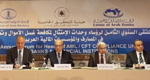 طربيه: لتوفير سياسات وضوابط لخفض المخاطر فتوح: تهدد مجتمعات بكاملها افتتح اتحاد المصارف العربية بالتعاون مع هيئة التحقيق الخاصة في لبنان، المنتدى السنوي الثامن لرؤساء وحدات الامتثال لمكافحة غسل الأموال وتمويل الارهاب في المصارف والمؤسسات المالية والعربية، في فندق موفنبيك في بيروت، في حضور الوزير السابق عدنان القصار، مدير التوجيه في الجيش العميد علي قانصوه ممثلا قائد الجيش العماد جوزاف ...