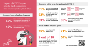 أكمل القراءة »استطلاع جديد لـ بي دبليو سي يكشف عن زيادة معدلات تسوق المستهلكين في منطقة الشرق الأوسط عبر الإنترنت والبقاء على اتصال خلال جائحة كوفيد-19