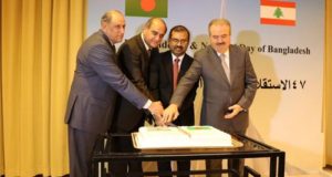 أقام سفير بنغلادش في لبنان عبدالمطلب ساركر وعقيلته، حفل استقبال بمناسبة عيد الاستقلال واليوم الوطني الـ 47 لبلاده، في فندق فينيسيا-بيروت، حضره ممثل رئيس الجمهورية وزير البيئة طارق الخطيب، ممثل رئيس مجلس النواب النائب ياسين جابر وممثل رئيس مجلس الوزراء وزير الاتصالات جمال الجراح، وحشد من سفراء الدول العربية والأجنبية، وممثلو القيادات العسكرية والأجهزة الأمنية، والأحزاب، ورجال الأعمال. وفي المناسبة، ...